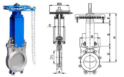 ■刀型闸阀 外形尺寸(链轮) 单位:mm