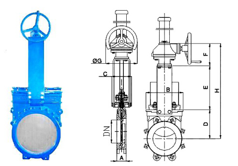 刀型闸阀 因采用刀型闸板,具有良好的剪切作用,最适宜于浆料、粉粒料、纤维等难以控制的流体,广泛应用于造纸、石化、矿山、排水、食品等行业。