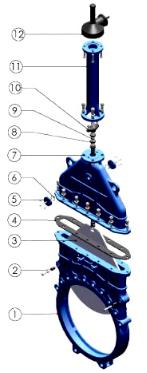 | YZ:暗板刀闸阀 | 无:手轮 | 7:对夹 | 3:平行单闸板 | X:EPDM | 10:1.0MPa | C:WCB |