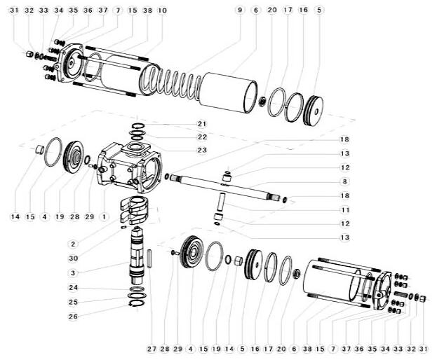 | 6 | 缸体 | 2 | 16 | 导向环 | 2 | 26 | 弹性挡圈 | 1 | 36 | 弹性垫圈 | 8 |