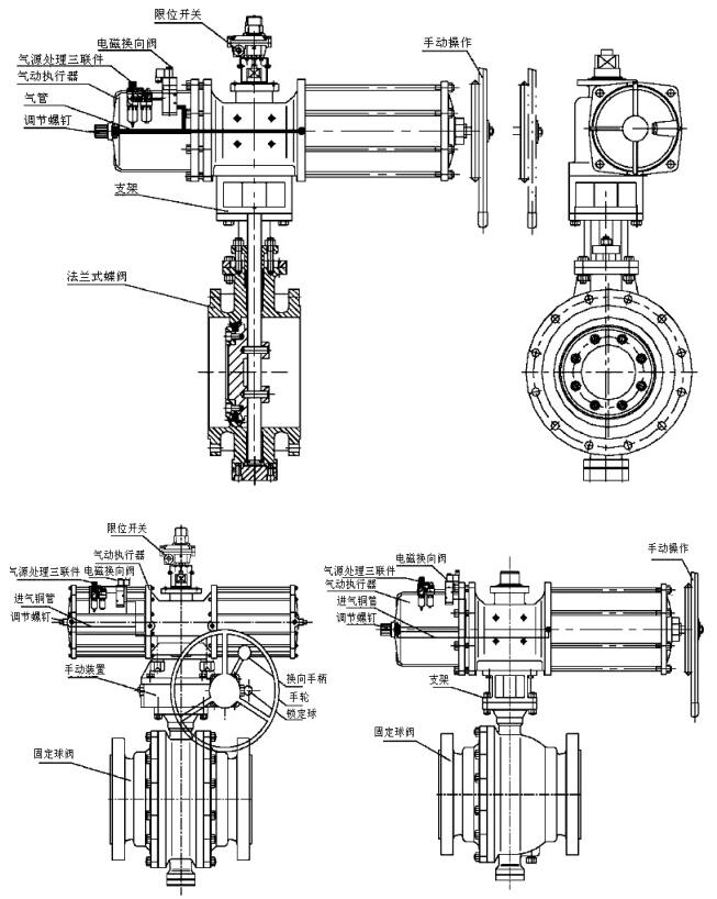 手动操作机构:挡自动控制发生故障时,可以实现手动打开关闭阀门。改机构有自动和手动切换装置,当切换到自动档位是,阀门通过远程控制,手动操作是无效的。