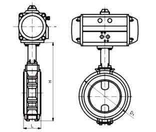 ■ 软密封对夹气动蝶阀 外形尺寸 单位:mm